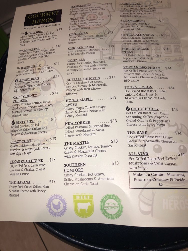 House of Heros offers a wide variety of sandwiches, pizzas, and Italian dishes at their location in Hicksville, NY. Customers rave about the delicious sandwiches, with reviews highlighting favorites like the Cajun shrimp wrap and chicken cutlet BLT. The menu also features classic Italian dishes like lasagna and gnocchi, cooked to perfection in their brick oven. The cozy ambiance and friendly service make this a great spot for a casual meal with friends or family. With options for takeout, catering, and outdoor seating, House of Heros caters to a diverse range of preferences. Whether you're in the mood for a hearty sandwich or a traditional Italian dish, House of Heros is a must-visit destination for food lovers in the area.